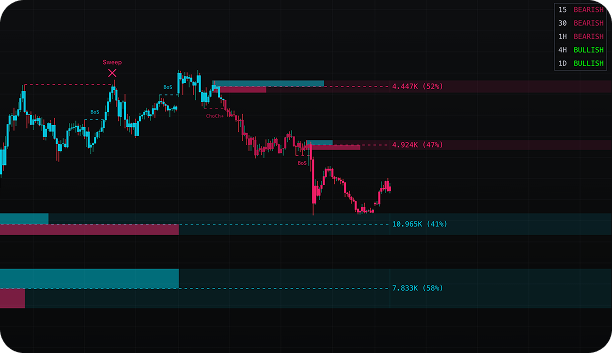 SMRT Algo replaces that confusion with clarity. It doesn’t just mark up your chart. It helps you understand the reasoning behind every move.